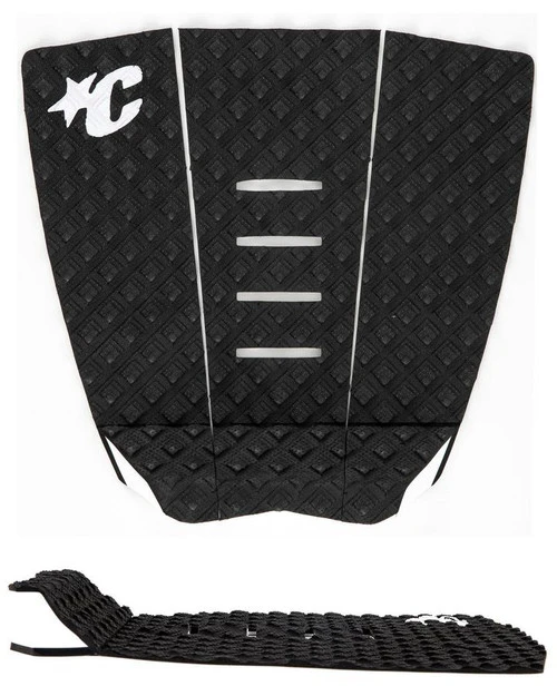 He created is Signature traction with a squarer and wider template for his larger foot, and preferred wider tail surfboards.